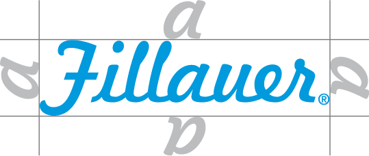 To maintain the visual impact of the Fillauer logo, never place any graphic or typographic element closer to the logo than the minimum clear space indicated here by the height of the “a” in the logo.