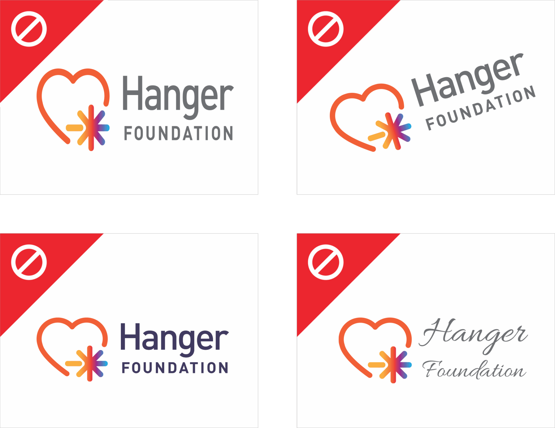 Distorting or altering the Hanger Foundation logo in any way compromises the integrity of the brand. Please don’t: